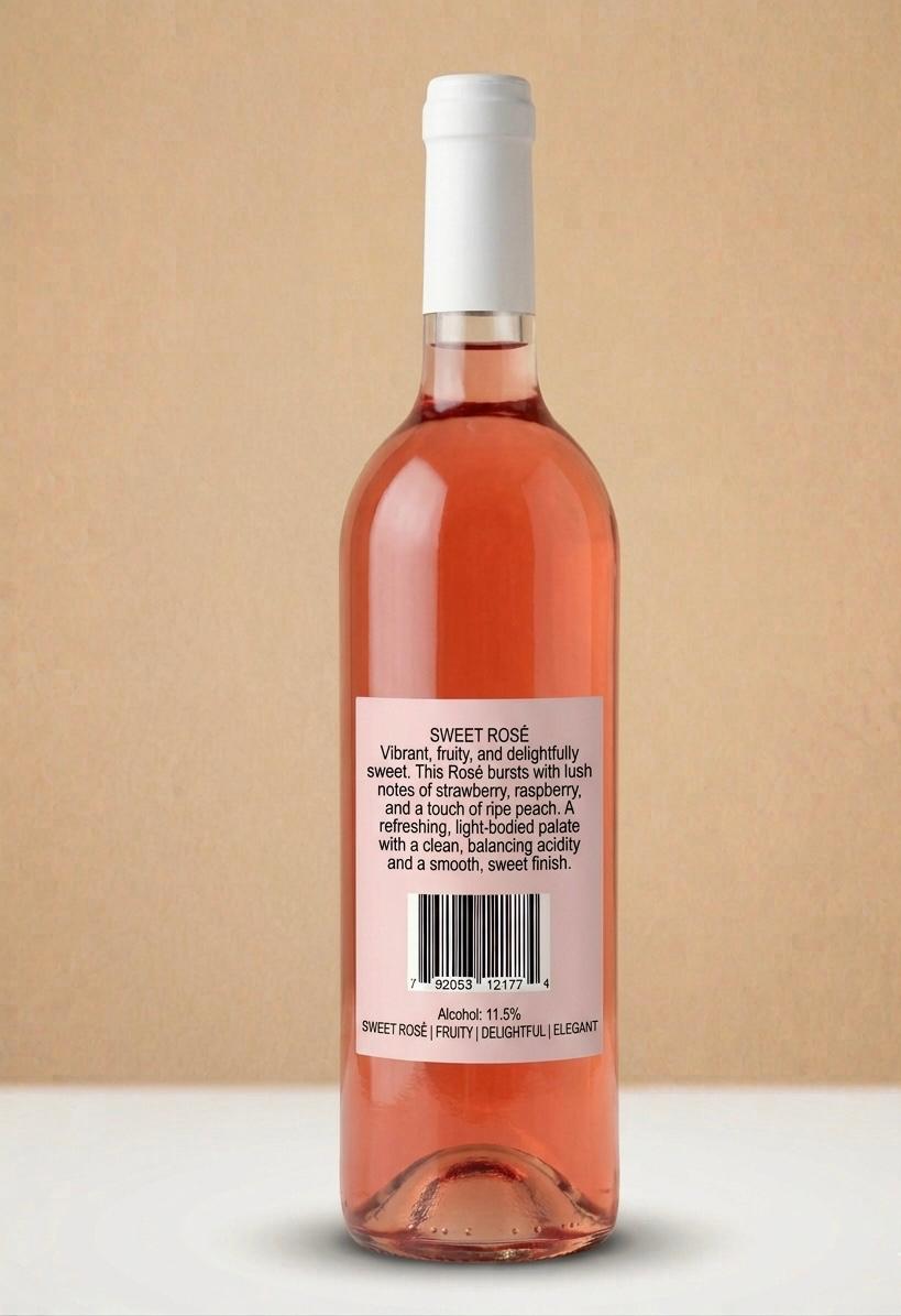 Vibrant , fruity and delightfully sweet. This Rosé bursts with lush notes of strawberry , raspberry , and a touch of ripe peach. A refreshing, light-bodied palate with a clean , balancing acidity and a smooth ,sweet finish.